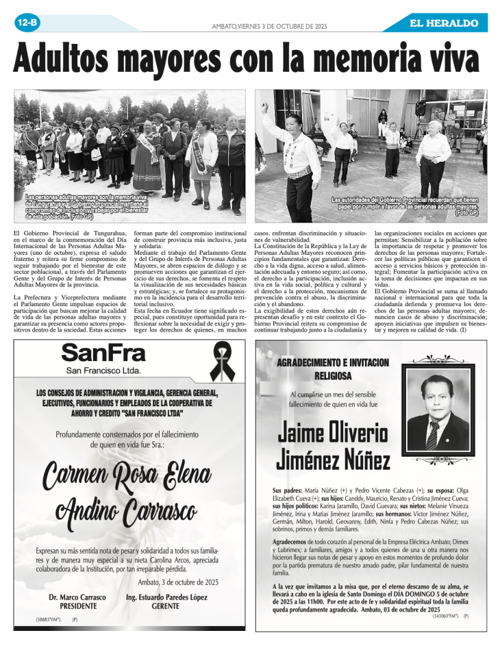 El Gobierno Provincial de Tungurahua, en el marco de la conmemoración del Día Internacional de las Personas Adultas Mayores (uno de octubre), expresa el saludo fraterno y reitera su firme […]