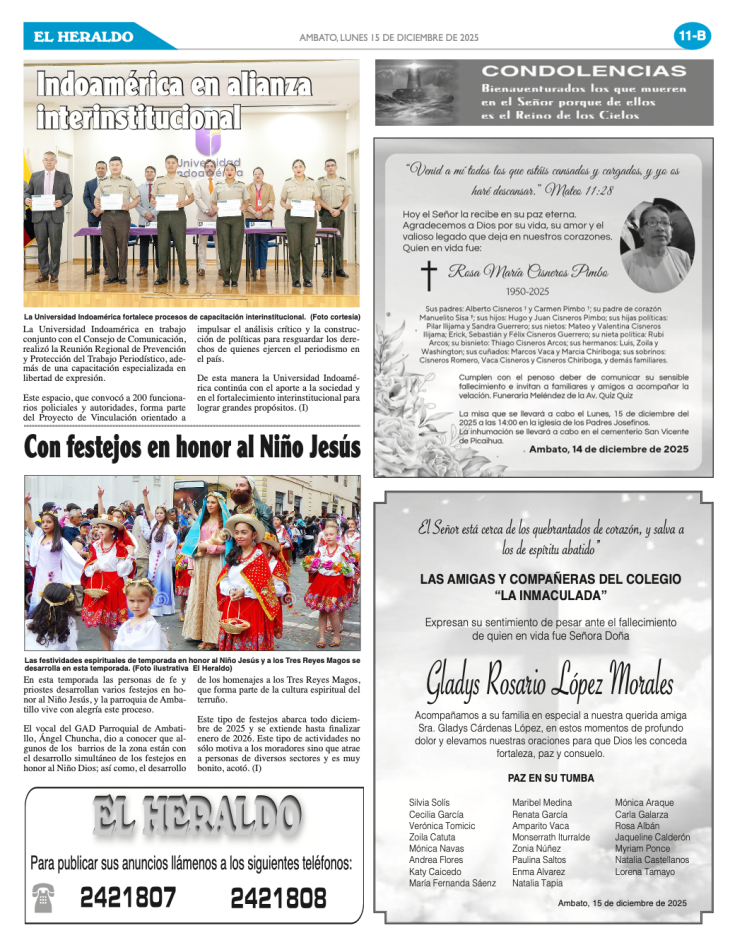 Santa Rosa está preparada para la Navidad con alegría y colaboración. Los agentes de Pastoral fueron los encargados de la elaboración del pesebre, dio a conocer el párroco Bernardino Núñez. Explicó […]