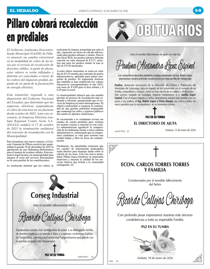 La Empresa Municipal de Agua Potable y Alcantarillado (Emapa) de Ambato anunció que suspenderá el servicio de agua potable en algunos sectores de la ciudad el miércoles 21 de enero, […]
