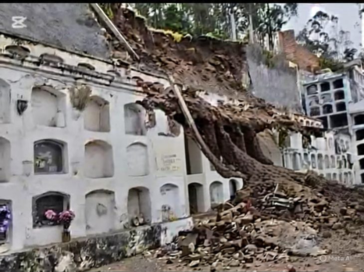 Deslizamiento de tierra alarma en cementerio de Píllaro