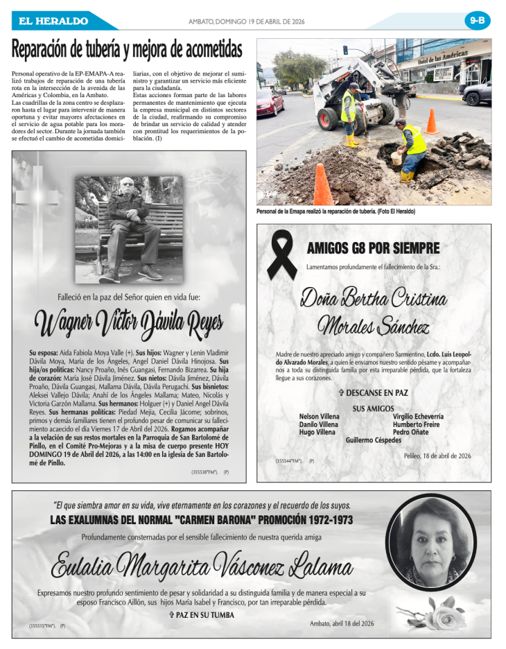 Tras las intensas lluvias registradas la noche del viernes, personal técnico y operativo de la EP-EMAPA-A se activó de manera inmediata para atender varias emergencias reportadas en distintos sectores de […]