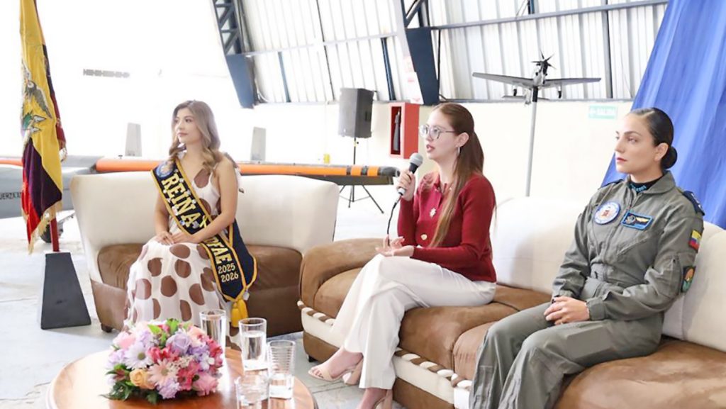 El conversatorio contó con la participación de la capitana María José Cueva, reconocida como la primera mujer piloto de combate de la Fuerza Aérea Ecuatoriana, quien compartió su experiencia profesional y los retos que enfrentó para abrir camino en el ámbito históricamente masculino. A su intervención se sumó María José Mesa, reina del Cidfae 2026 y estudiante de psicología. La soberana habló sobre la importancia de la salud mental, el valor de la sensibilidad y la empatía en el servicio a la comunidad.