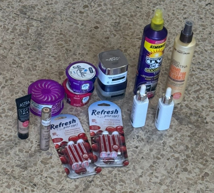 Tras un registro, en su cartera fueron encontrados diversos artículos de cuidado personal y limpieza, entre ellos cremas faciales, sérums, base de maquillaje y ambientadores, cuyo valor total ascendía a 135,80 dólares, según la cotización emitida por el propio establecimiento.