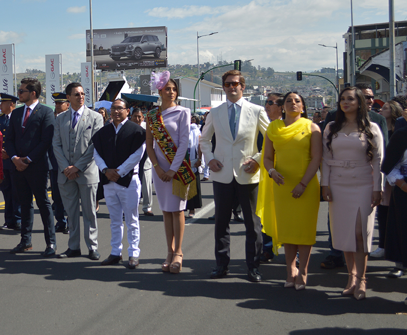 Posteriormente, con autoridades locales y provinciales, recorrió el trayecto de la avenida Cevallos, junto a la soberana ambateña, liderando la antesala de lo que sería el desfile estudiantil a lo largo de la principal arteria de la ciudad.