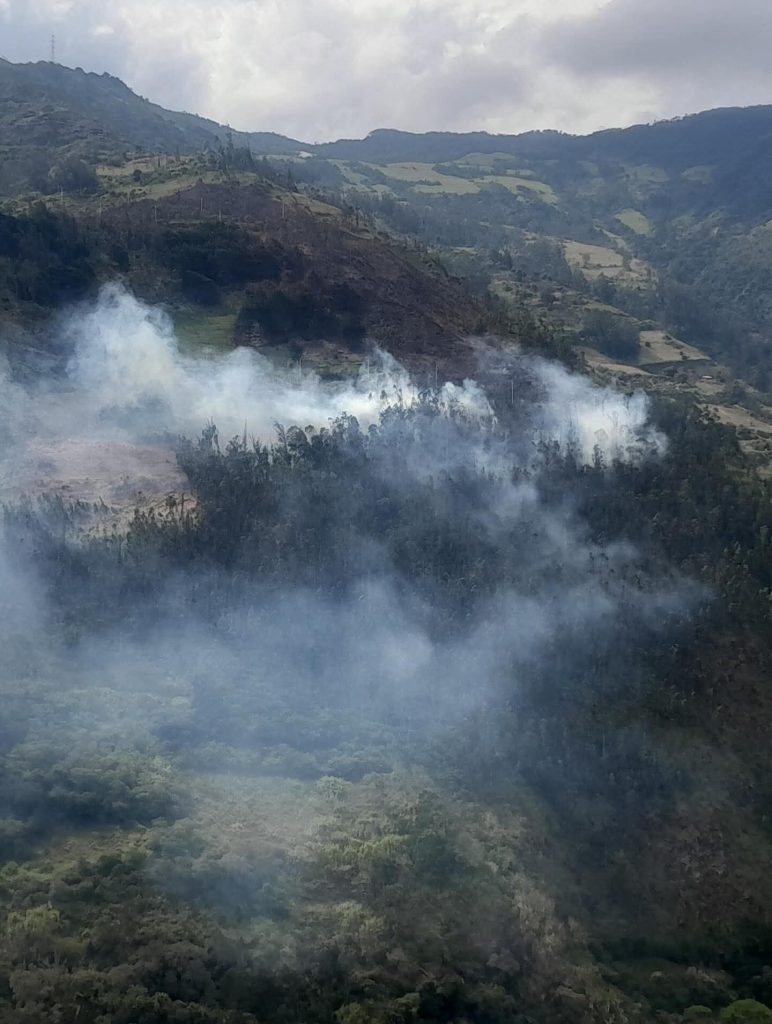 Bomberos combaten incendio forestal en Lligua