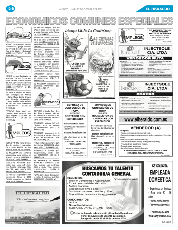 CLASIFICADOS 27 DE OCTUBRE DE 2025