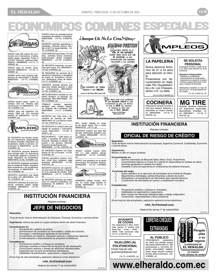 CLASIFICADOS 15 DE OCTUBRE DE 2025