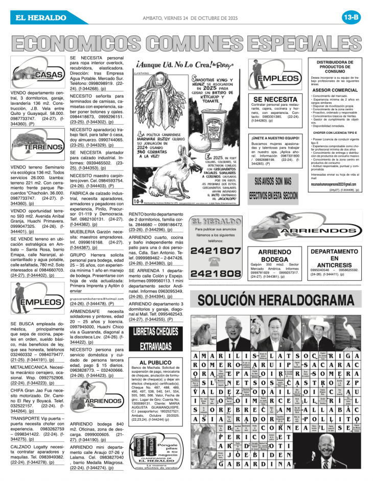 CLASIFICADOS 24 DE OCTUBRE DE 2025