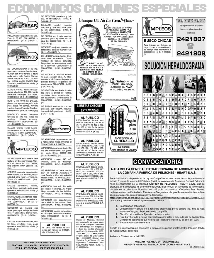 CLASIFICADOS 29 DE SEPTIEMBRE DE 2025