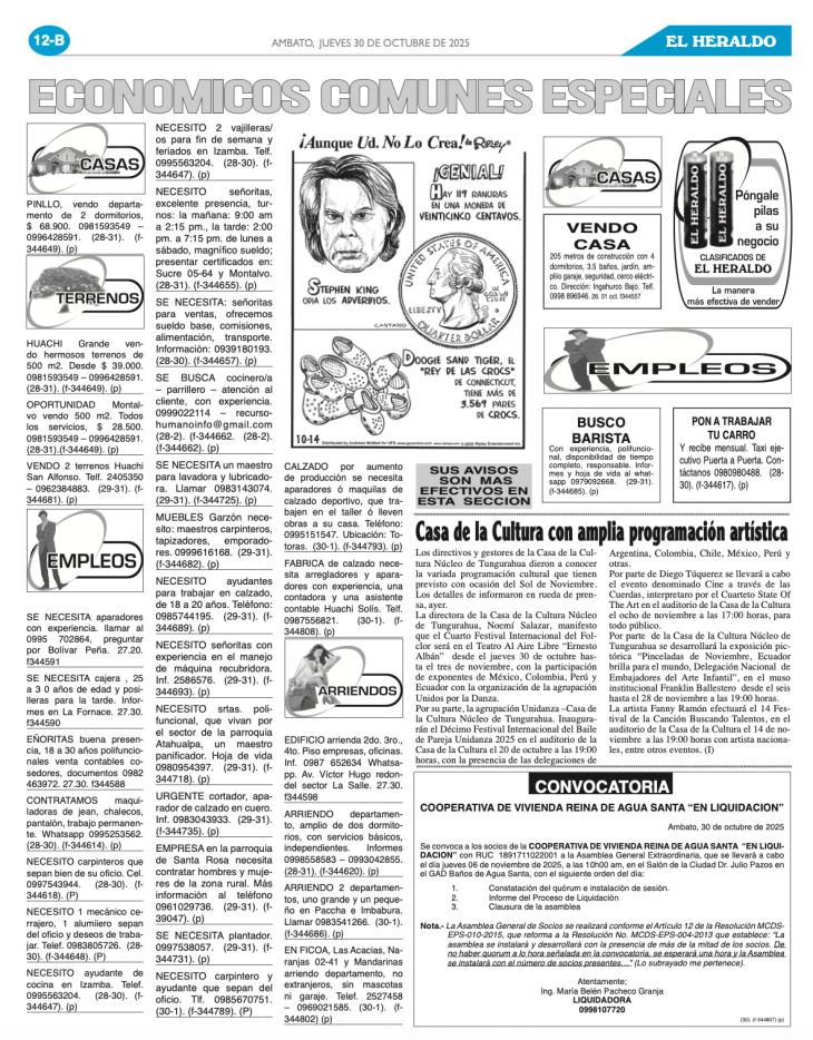 CLASIFICADOS 30 DE OCTUBRE DE 2025