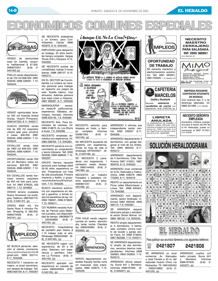 CLASIFICADOS 08 DE NOVIEMBRE DE 2025