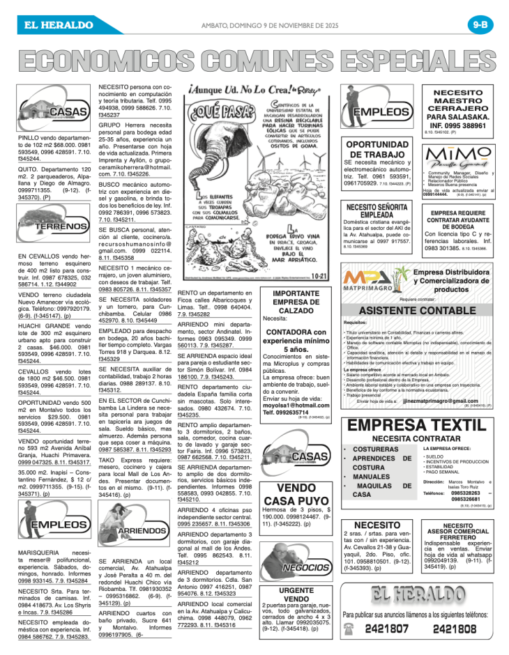 CLASIFICADOS 09 DE NOVIEMBRE DE 2025