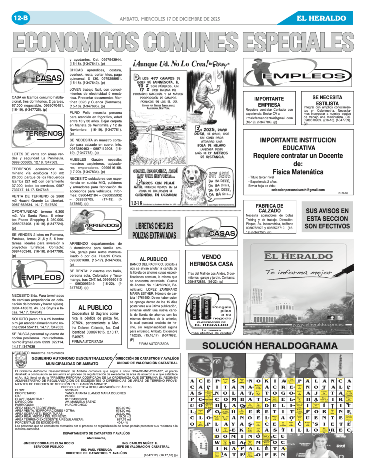 CLASIFICADOS 17 DE DICIEMBRE DE 2025