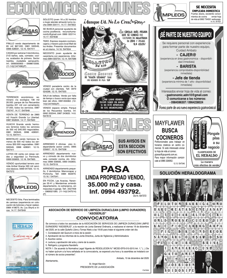 CLASIFICADOS 14 DE DICIEMBRE DE 2025