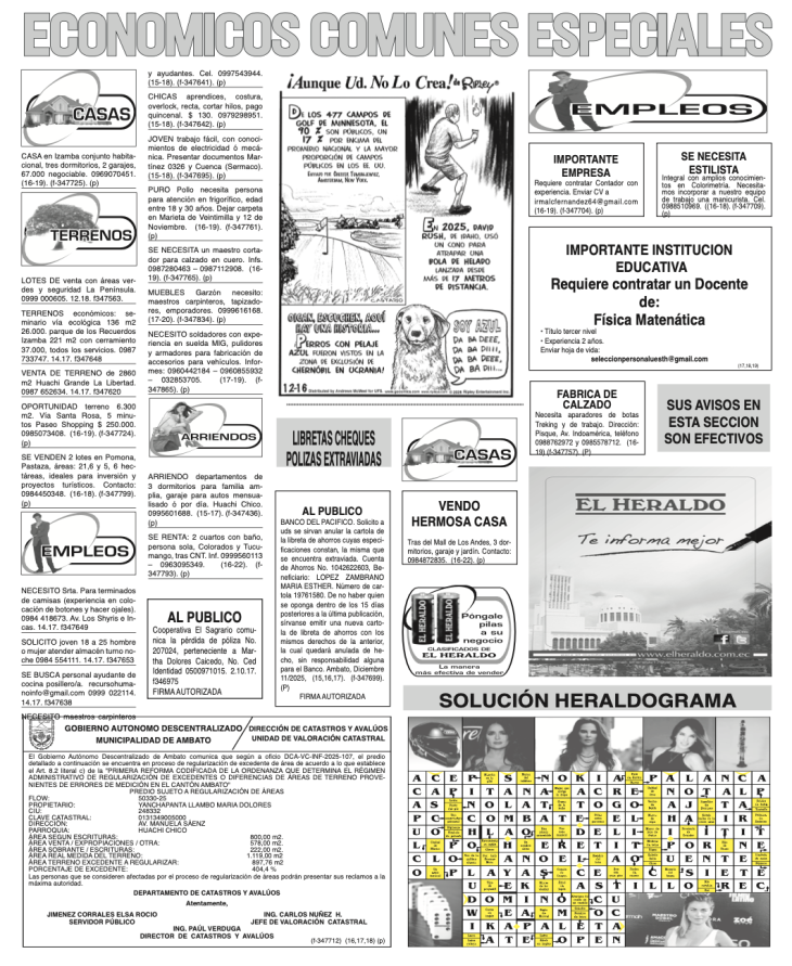 CLASIFICADOS 16 DE DICIEMBRE DE 2025