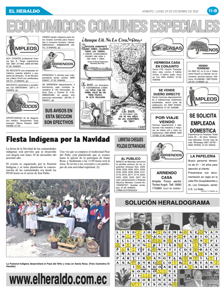 CLASIFICADOS 29 DE DICIEMBRE DE 2025