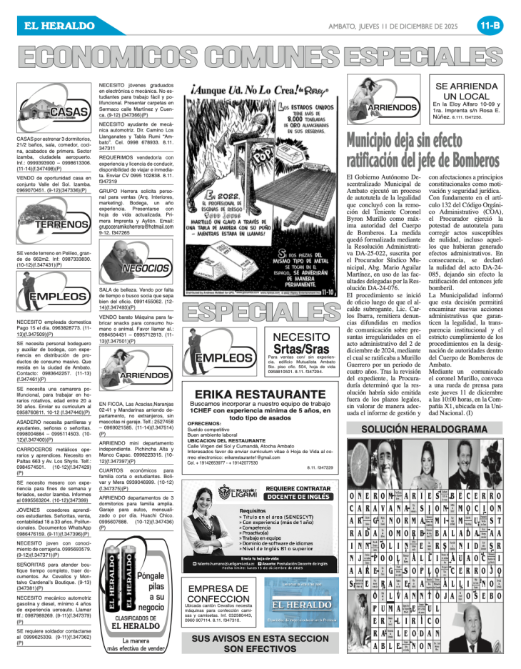 CLASIFICADOS 11 DE DICIEMBRE DE 2025