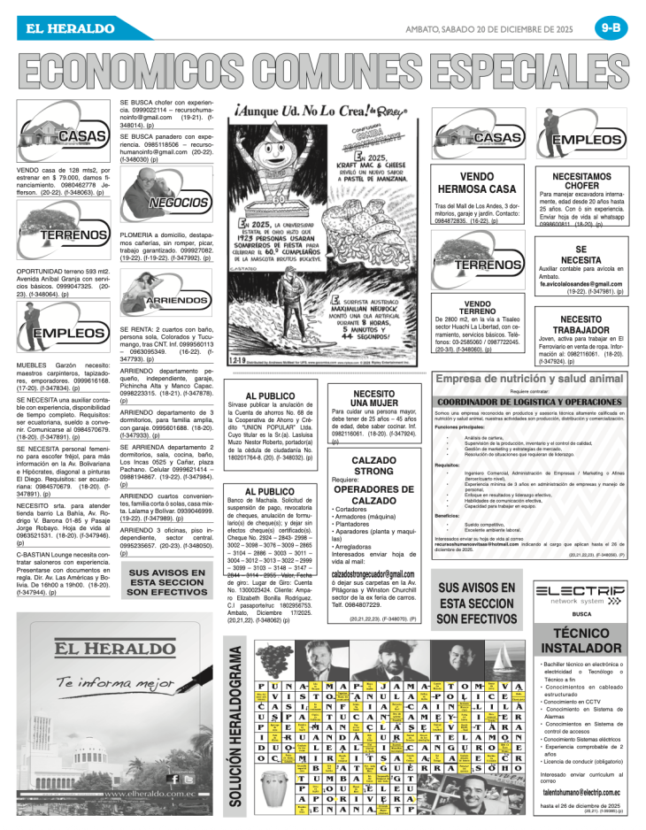 CLASIFICADOS 20 DE DICIEMBRE DE 2025