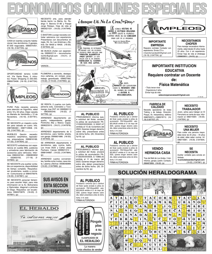 CLASIFICADOS 18 DE DICIEMBRE DE 2025