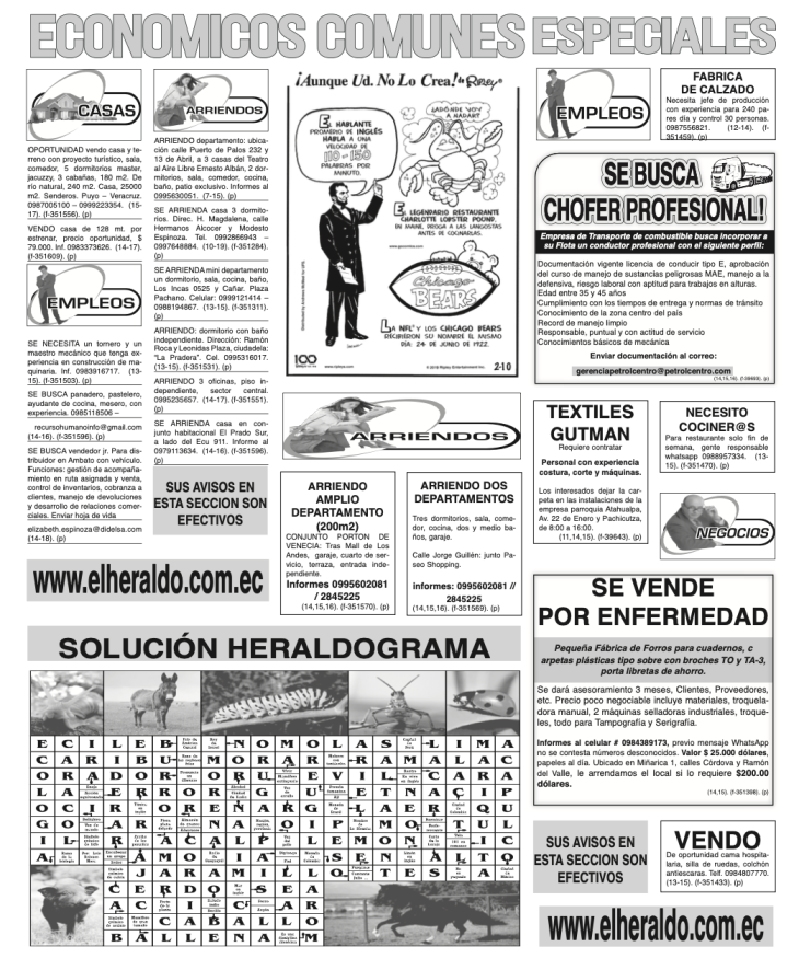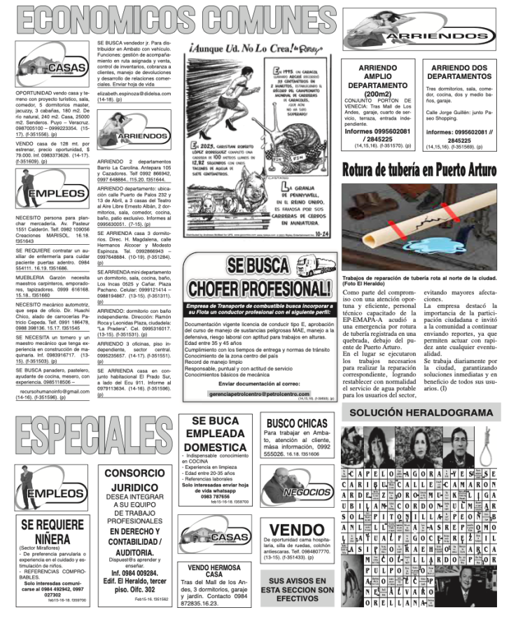 CLASIFICADOS 15 DE FEBRERO DE 2026
