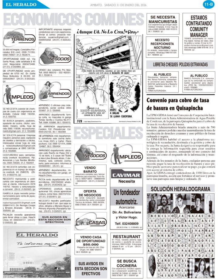 CLASIFICADOS 31 DE ENERO DE 2026