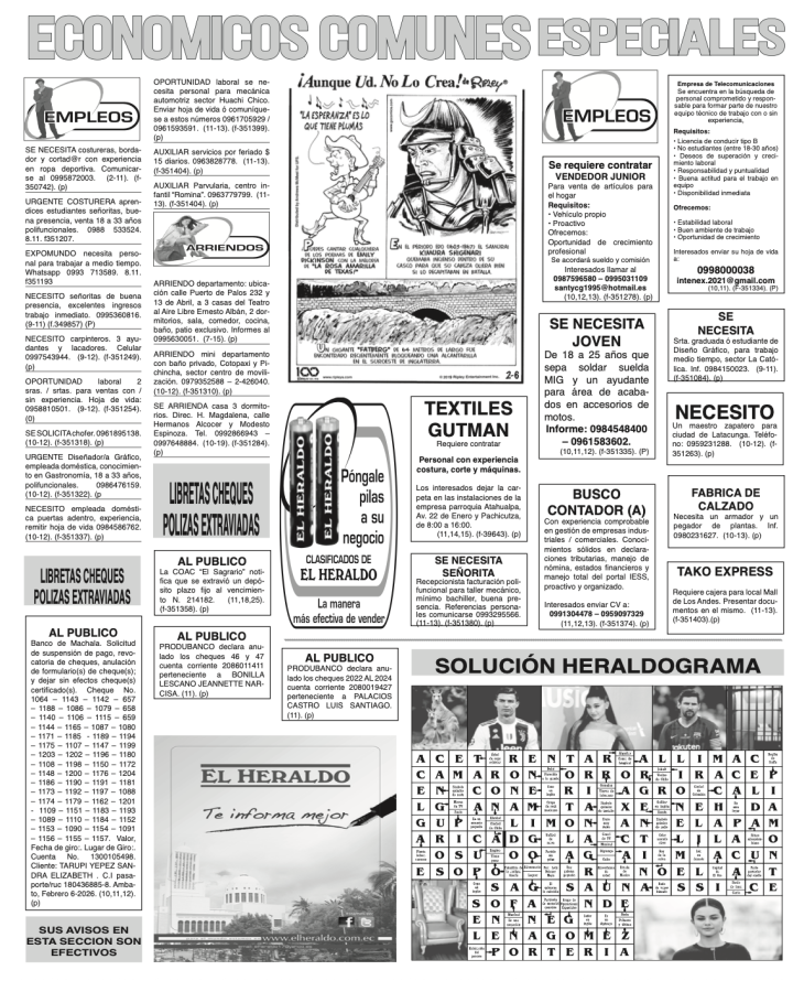 CLASIFICADOS 12 DE FEBRERO DE 2026