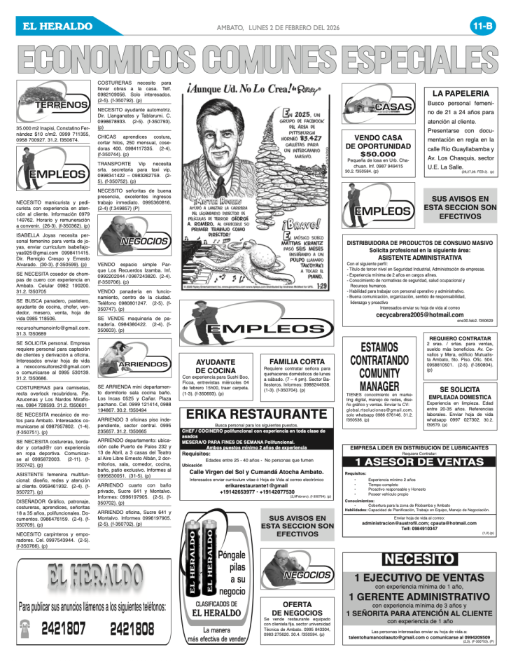 CLASIFICADOS 02 DE FEBRERO DE 2026
