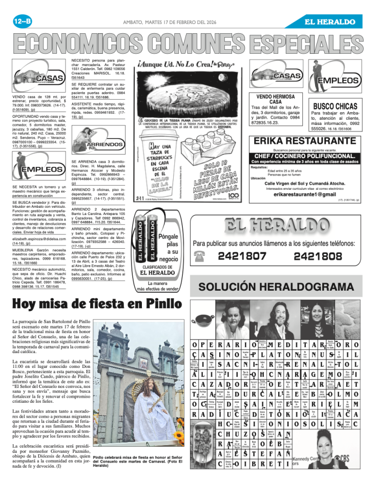 CLASIFICADOS 17 DE FEBRERO DE 2026
