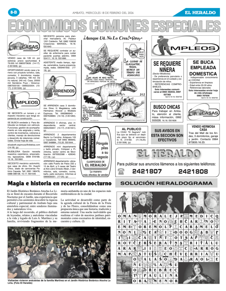 CLASIFICADOS 18 DE FEBRERO DE 2026