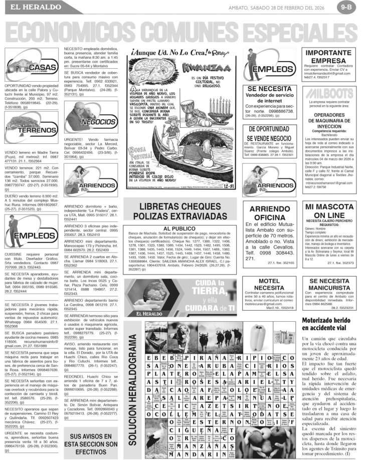 CLASIFICADOS 28 DE FEBRERO DE 2026