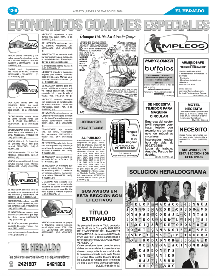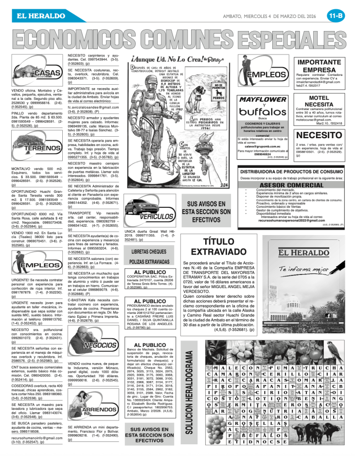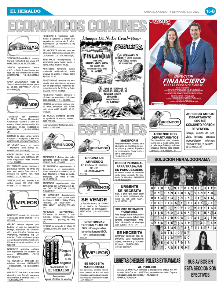 CLASIFICADOS 26 DE FEBRERO DE 2026