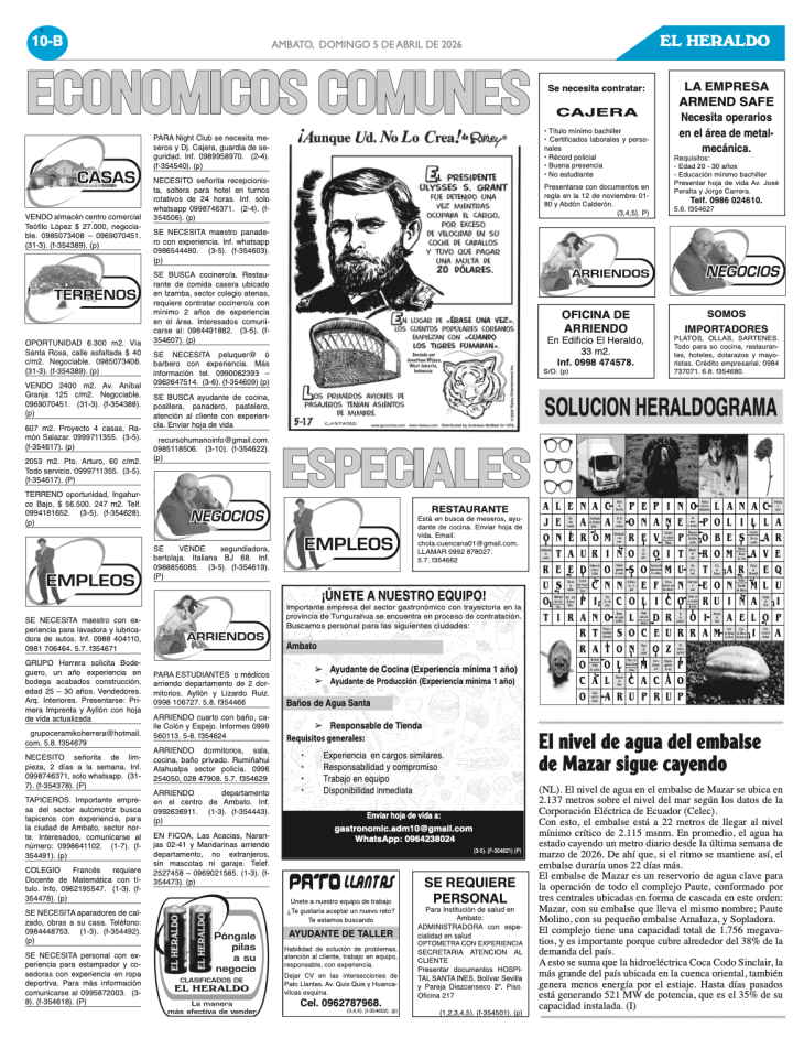 CLASIFICADOS 05 DE ABRIL DE 2026