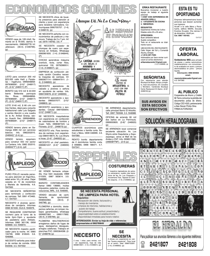 CLASIFICADOS 07 DE DICIEMBRE DE 2025