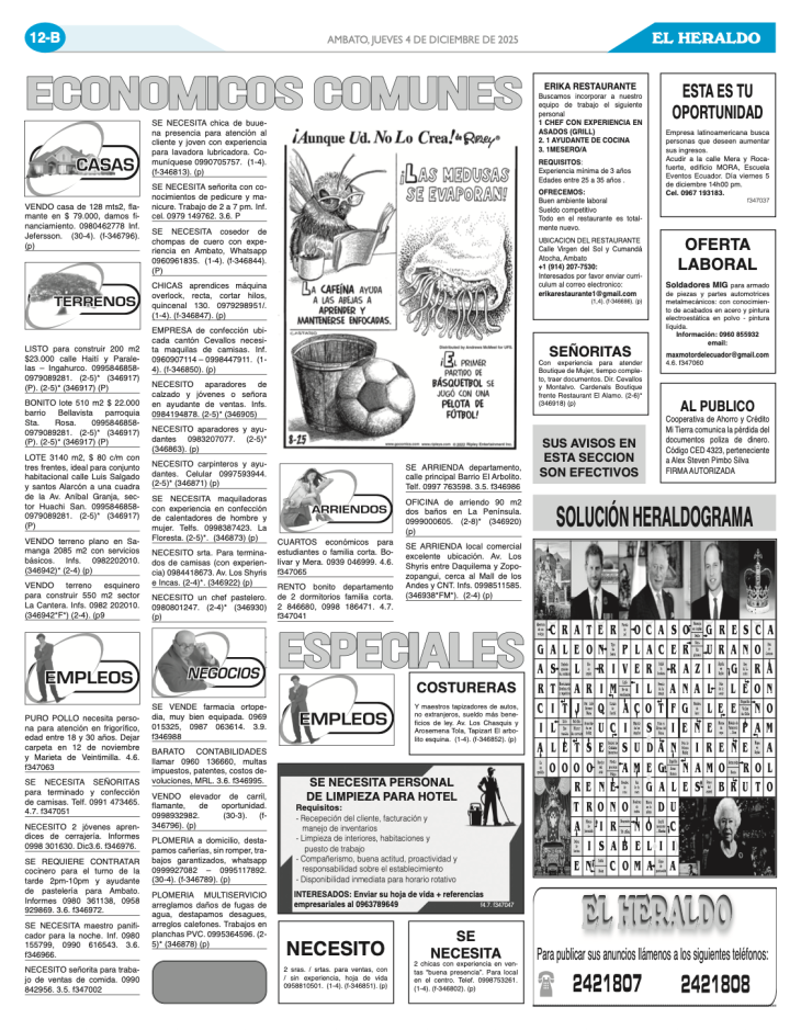 CLASIFICADOS 04 DE DICIEMBRE DE 2025
