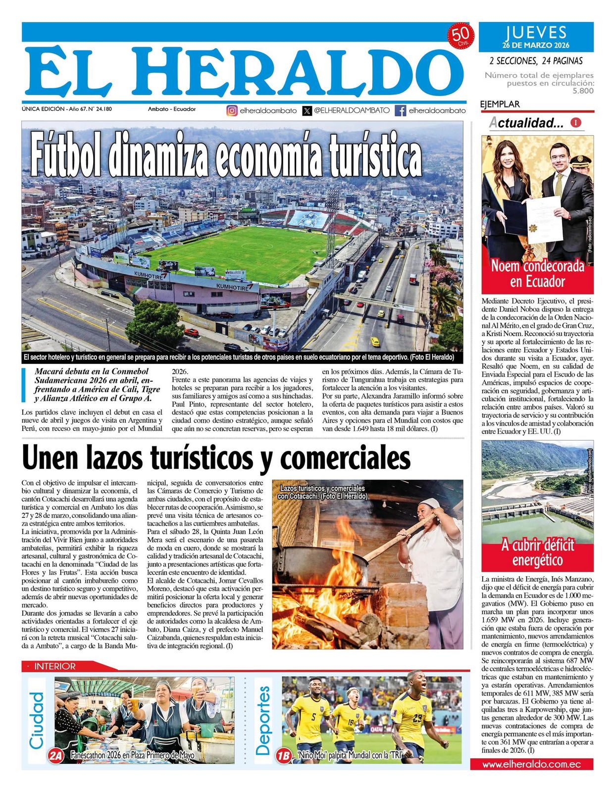 Tras las festividades de las Bodas de Diamante de la FFF 2026, la alcaldía de Ambato, ha mencionado que fueron más de 500 mil visitantes que llegaron desde distintas partes […]