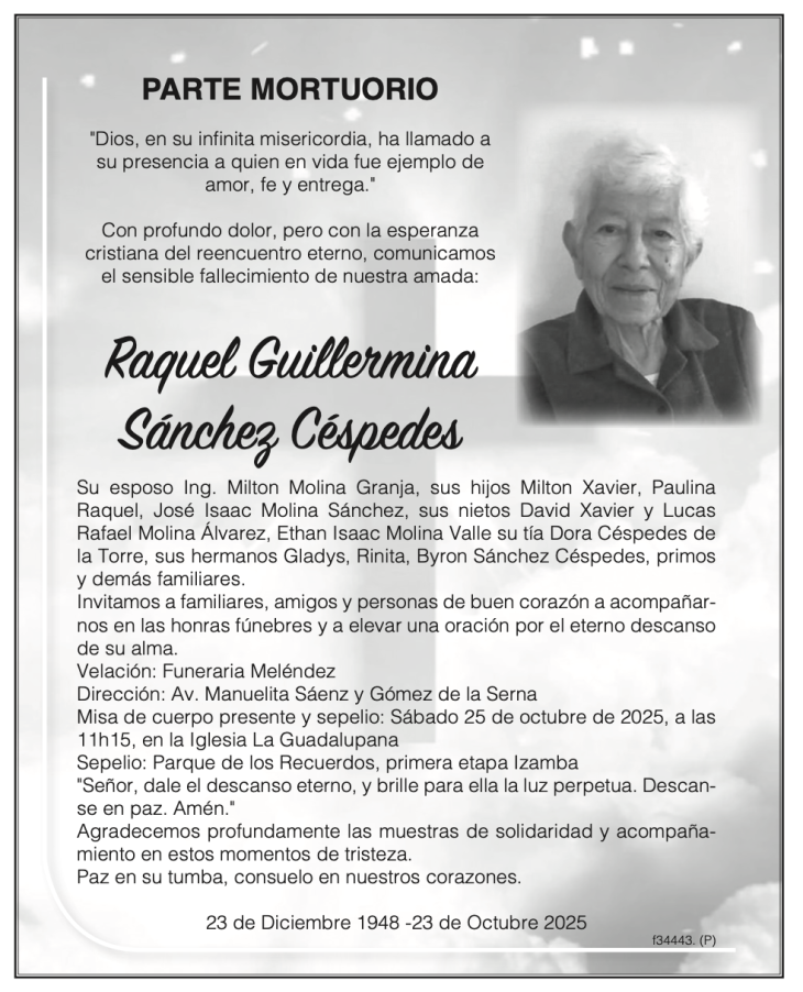 PARTES MORTUORIOS Y OBITUARIOS 23 DE OCTUBRE DE 2025 23 octubre, 202523 octubre, 2025 El Heraldo Partes Mortuorios