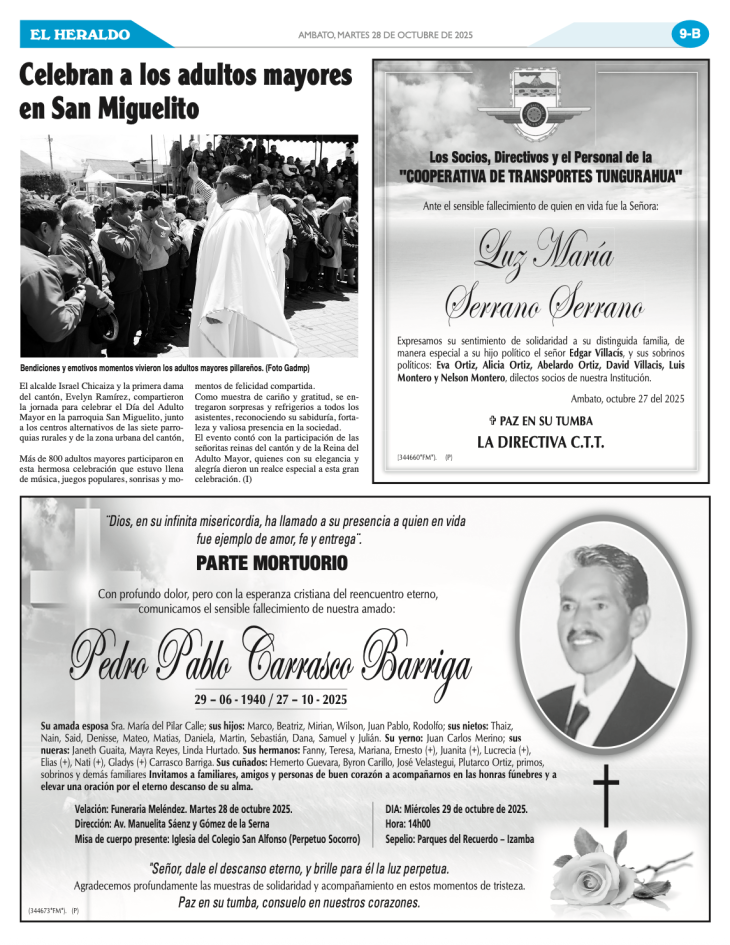 PARTES MORTUORIOS Y OBITUARIOS 28 DE OCTUBRE DE 2025 28 octubre, 202528 octubre, 2025 El Heraldo Partes Mortuorios
