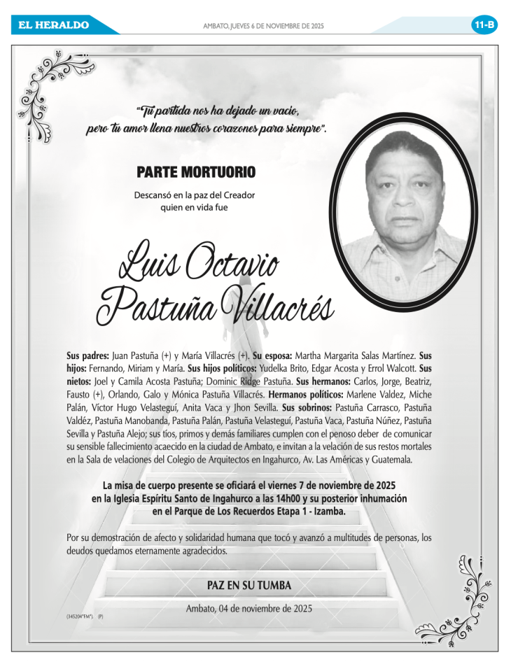 PARTES MORTUORIOS Y OBITUARIOS 31 DE OCTUBRE DE 2025 31 octubre, 20254 noviembre, 2025 El Heraldo Partes Mortuorios