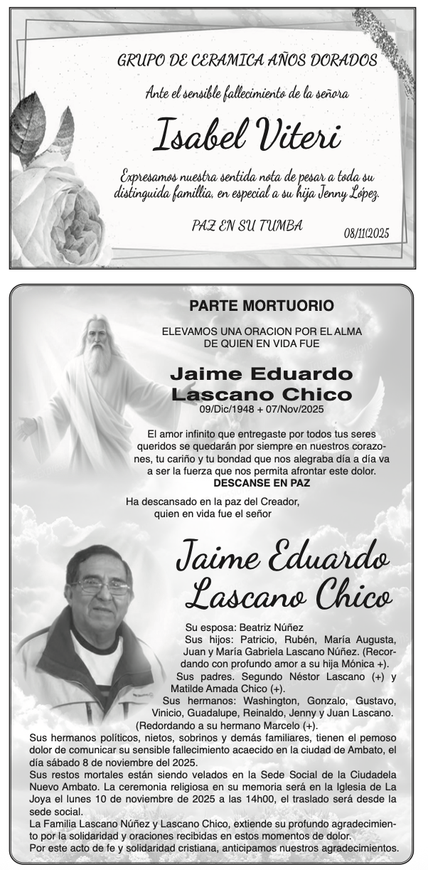 PARTES MORTUORIOS Y OBITUARIOS 10 DE NOVIEMBRE DE 2025 10 noviembre, 202510 noviembre, 2025 El Heraldo Partes Mortuorios