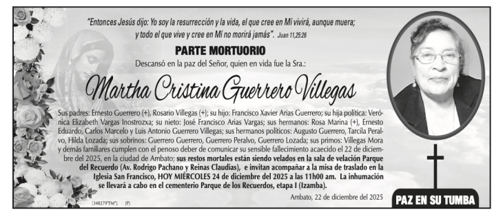 PARTES MORTUORIOS Y OBITUARIOS 24 DE DICIEMBRE DE 2025 24 diciembre, 202524 diciembre, 2025 El Heraldo Partes Mortuorios