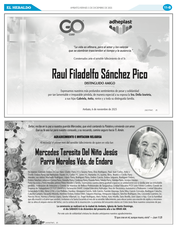 PARTES MORTUORIOS Y OBITUARIOS 12 DE DICIEMBRE DE 2025 12 diciembre, 202512 diciembre, 2025 El Heraldo Partes Mortuorios