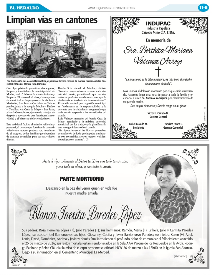 PARTES MORTUORIOS Y OBITUARIOS 12 DE MARZO DE 2026 12 marzo, 202612 marzo, 2026 El Heraldo Partes Mortuorios