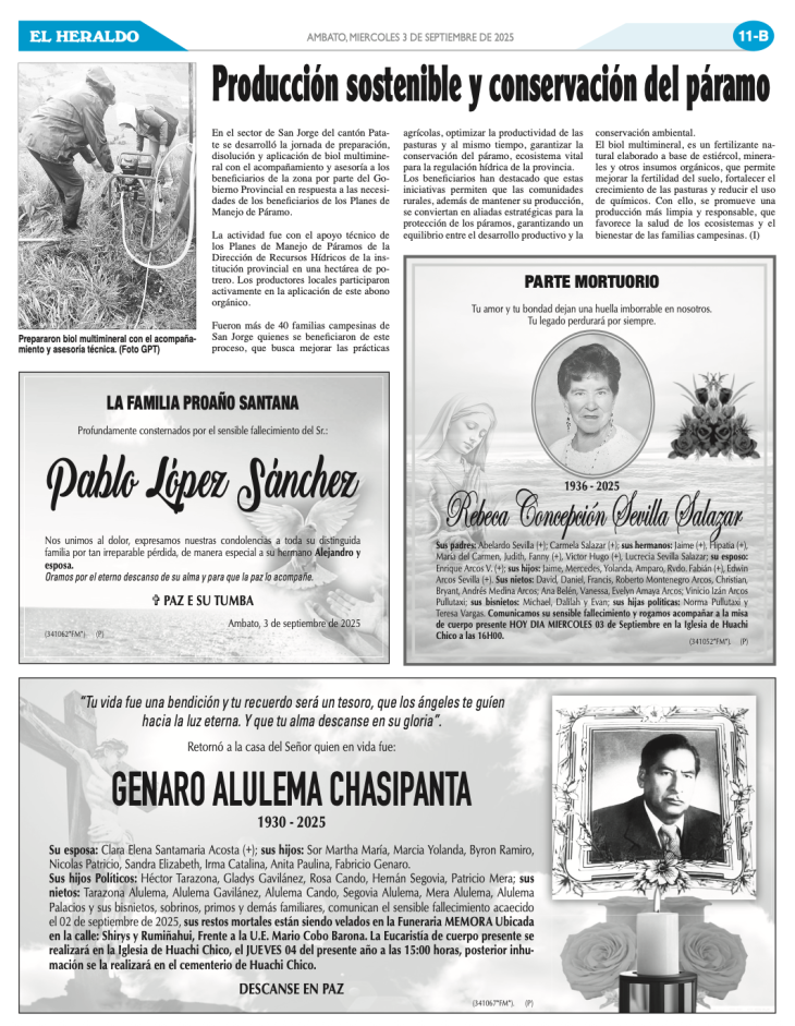 PARTES MORTUORIOS Y OBITUARIOS 11 DE SEPTIEMBRE DE 2025 11 septiembre, 202511 septiembre, 2025 El Heraldo Partes Mortuorios