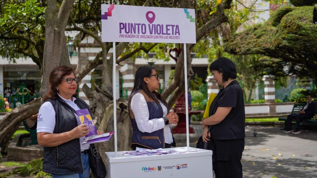 Los Puntos Violetas están en el Parque Cevallos, Parque Montalvo, Hospital Municipal Nuestra Señora de la Merced, explanada del GAD Municipal Sur y en las parroquia Pilahuín y Santa Rosa. Durante la última jornada, el jueves 6, entregaron 1.500 rutas de atención, con un total de 250 informativos por cada Punto Violeta brindando herramientas para actuar de manera informada ante situaciones de violencia y conocer los canales de apoyo disponibles.