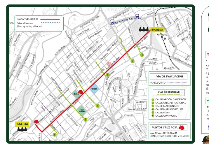 La institución recordó que estará prohibido estacionar vehículos sobre la avenida Cevallos, uno de los principales ejes donde se desarrollará el desfile. La medida busca facilitar el trabajo operativo, garantizar el paso seguro de las delegaciones y mantener despejado el corredor vial para evitar retrasos o incidentes durante la jornada cívica.