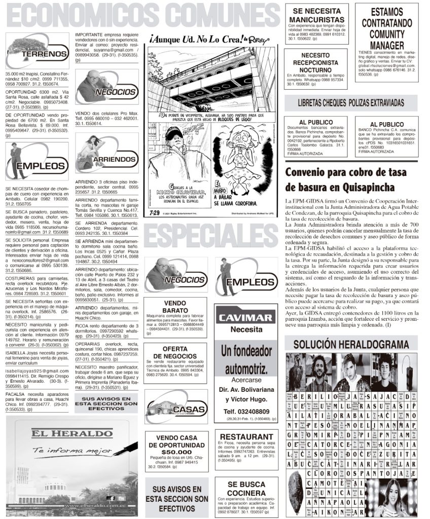 CLASIFICADOS 01 DE FEBRERO DE 2026