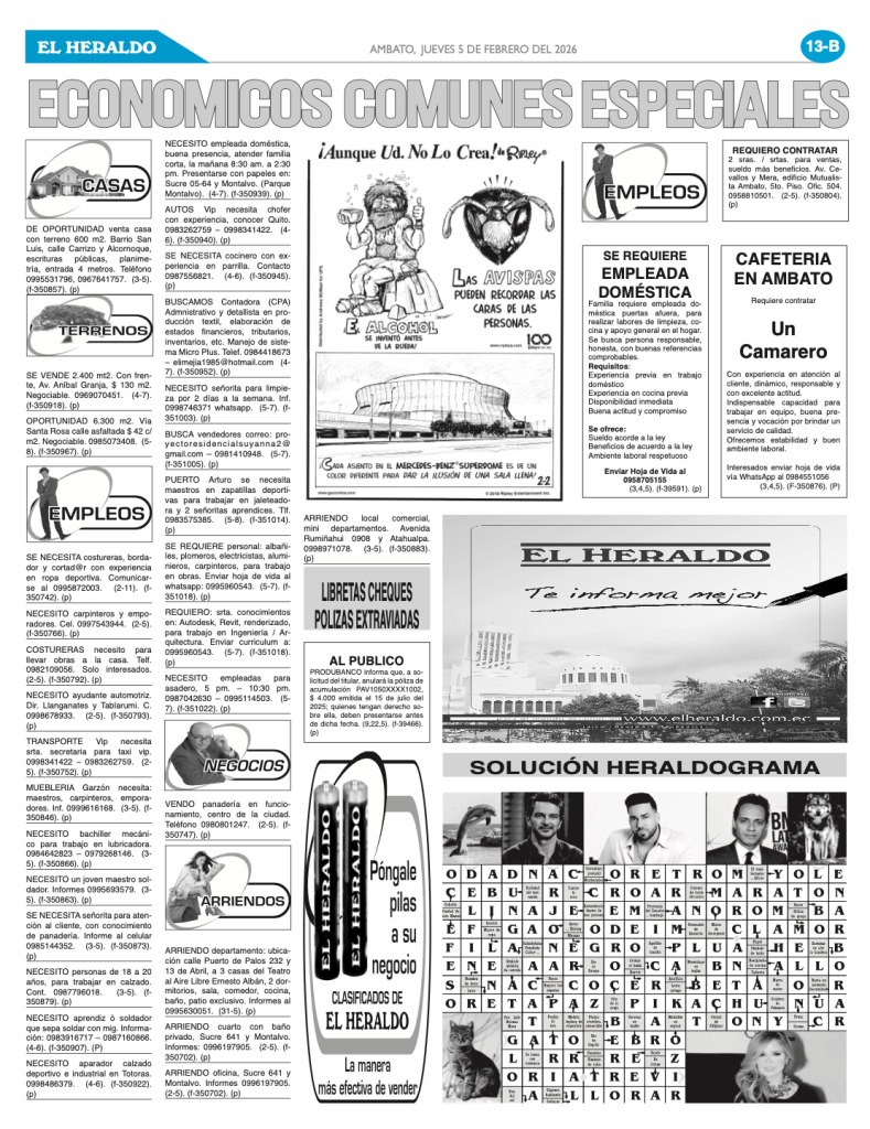 CLASIFICADOS 05 DE FEBRERO DE 2026