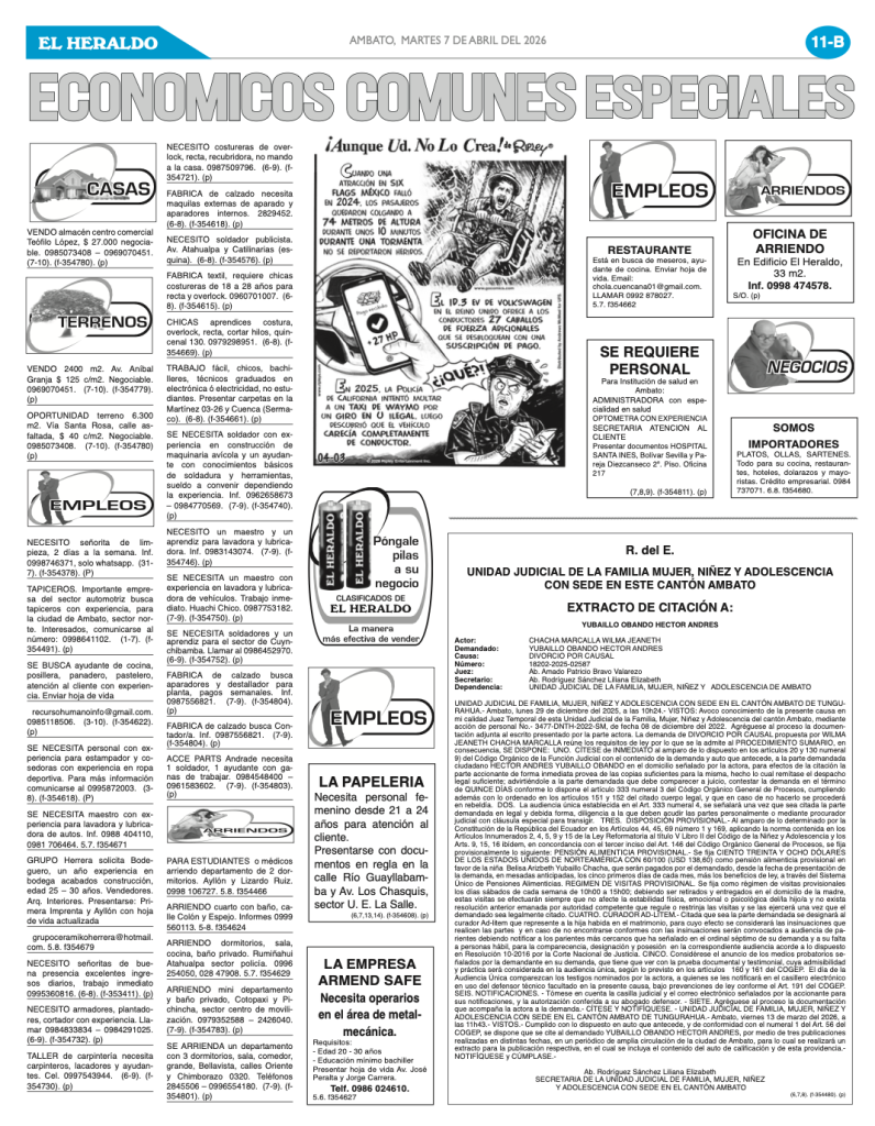 CLASIFICADOS 07 DE ABRIL DE 2026