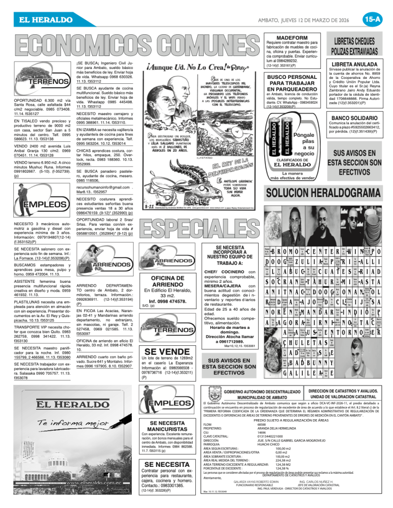 CLASIFICADOS 12 DE MARZO DE 2026