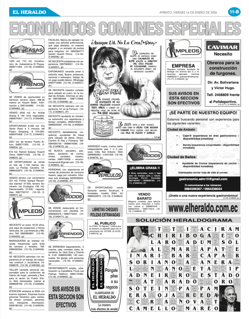 CLASIFICADOS 16 DE ENERO DE 2026
